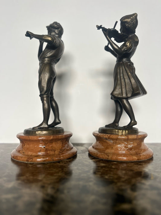PAIR OF BRONZE FIGURES, LANCINI,ITALY,MUSCIANS VIOLIN FLUTE VINTAGE 731a